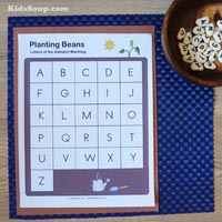 Discuss with children what seeds need to grow (soil, sunlight, water). Let children pretend to be a seed in the ground. Play some light music and walk around the children with a watering can pretending to water each seed. Everytime you water the child, the bean plant is growing bigger and bigger.
