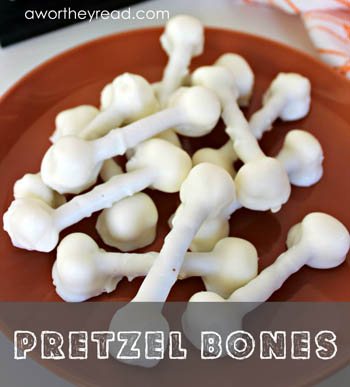 Pretzel Bones Snack Idea from awortheyread.com