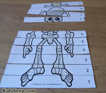 Let children place the Skeleton Puzzle pieces together in order from 1-10.