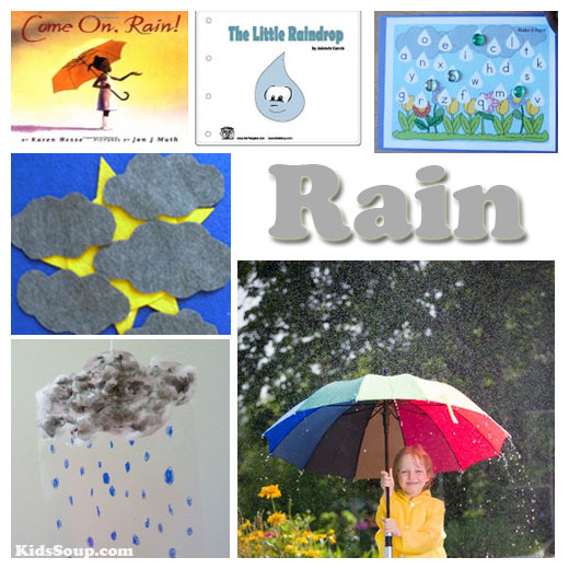 Children will learn about why it rains and why we need rain. After listening to the book Come On, Rain!, children will experience the phenomenon of rain through movement and rhyme. They will learn about the water cycle through reading The Little Raindrop emergent reader, listening to a felt story about rain clouds, and creating rain-related crafts, math activities, and language arts activities.