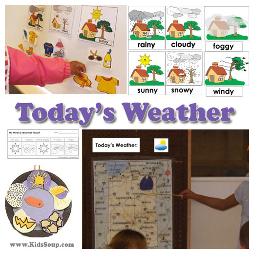 Children will learn about different kinds of weather and the terms that describe weather. They will predict, observe, and describe weather. Using weather cards, they will take turns pretending to be weather reporters to tell about the daily weather where they live and to match the clothing they might wear to a particular kind of weather.