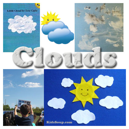 Children will learn about clouds. Through discussion, observation, listening to felt stories, and completing cloud and rain related artwork and crafts, children will become familiar with the different types of clouds and will discover that nimbus clouds are the ones that produce rain.