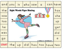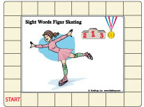 Taking turns, each player rolls the dice and moves the matching number of spaces on the Game Board. If he/she can read the word on the landing space, he/she can place one penny on a skate on his/her podium card. Then, he/she writes the word on his/her My Winning Sight Words Worksheet. The player closest to the START space with six sight words written on his/her worksheet wins the game.